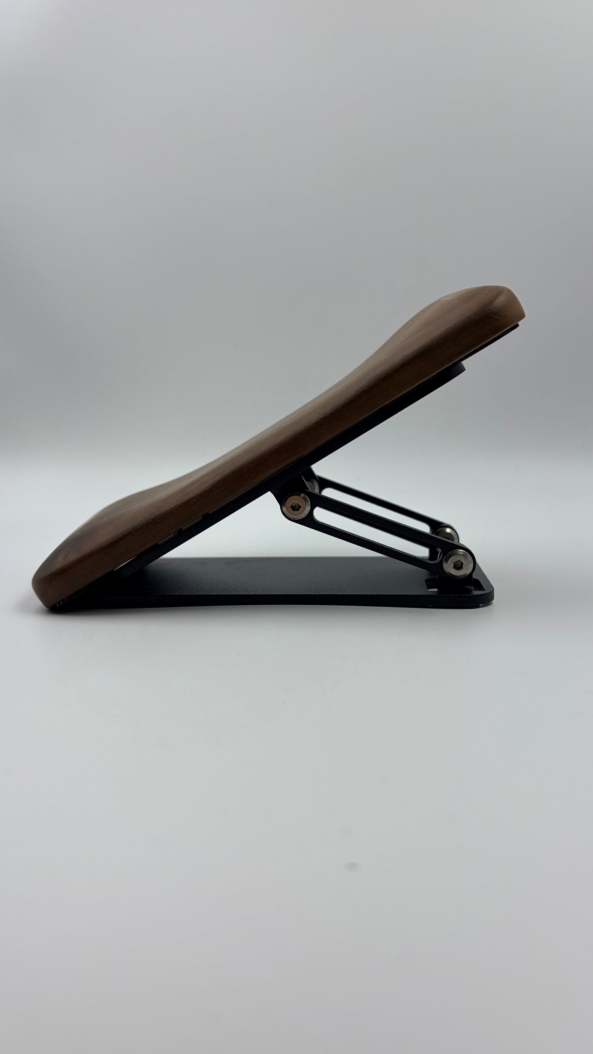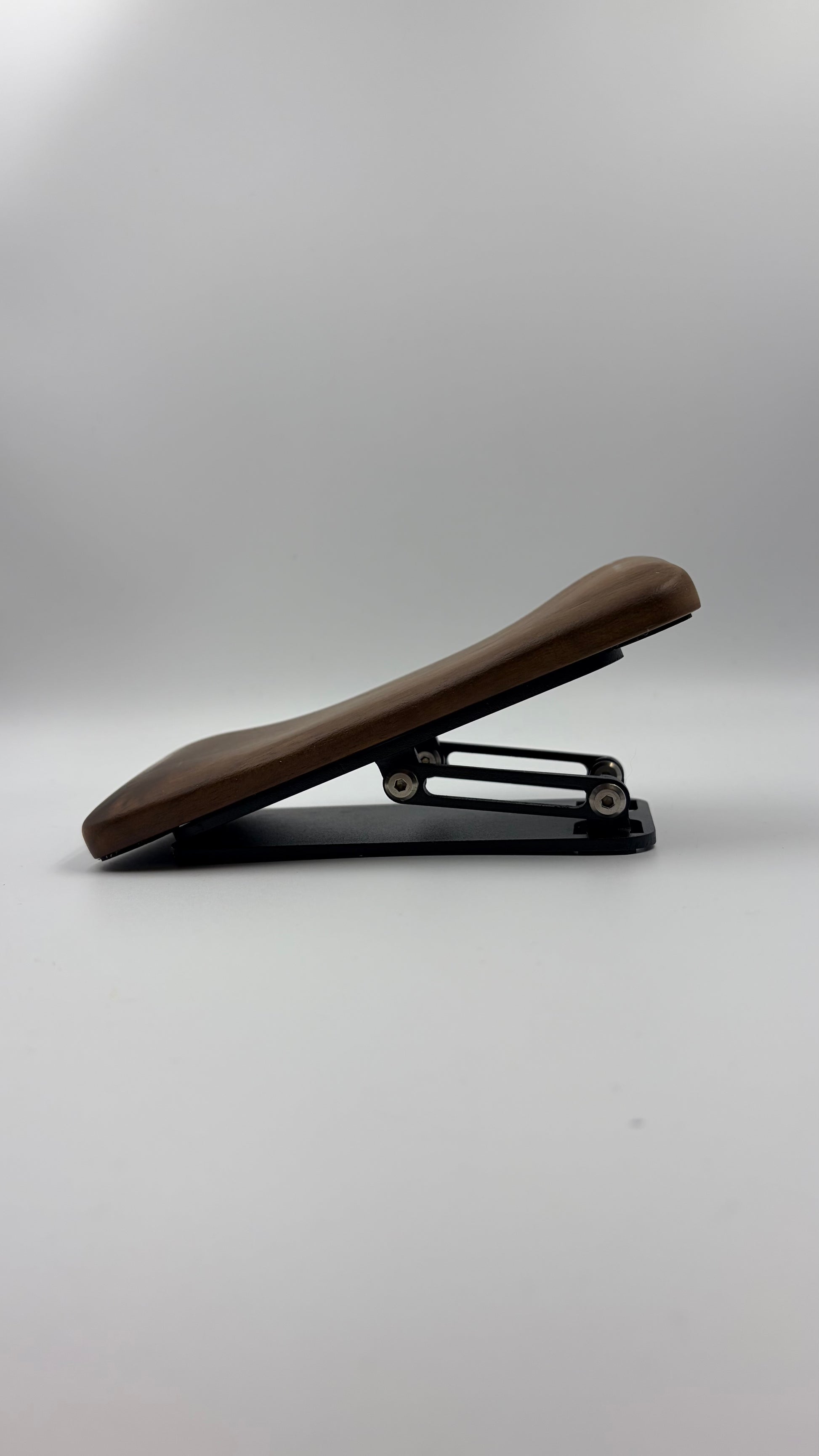 Enhance comfort with this Black Walnut palm rest designed for split keyboards and mouse use. Its curved shape supports your wrists ergonomically, while sturdy metal stands let you adjust height and tilt easily with hex screws. Tailor your setup for better posture and longer typing comfort.